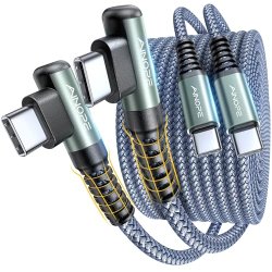 Ainope 6.6ft 60W Right-Angle USB-C to USB-C Cable (2-Pack) $4.99