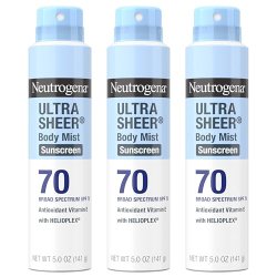 Neutrogena露得清 Ultra Sheer 广谱 SPF 70防晒喷雾,轻盈、不油腻、防水、5 oz/瓶,共3瓶,原价$39.96,现仅售$22.63,免运费!