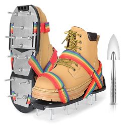 Amazon网上销售,原价$25.69,现$19.99,会员或订单满$35则免费送货。给草坪打孔,可以增加土壤的透气性、渗水性,促进草根往深处生长,吸收更多养分,让草坪更健康,增加抵御干旱、严寒或酷热的能力。这款 11.5*5 英寸透气鞋适合女士鞋码 6-10,男士鞋码 6-9,鞋跟处有 3 条可调节的魔术贴绑带,用钩环扣固定,不会滑落或松脱。采用铝合金和塑料鞋底的双层设计,确保坚固、耐用、舒适,而其他鞋款仅采用塑料或金属鞋底。高强度钉子能轻松为土壤输送氧气、水分和养分。其屈服强度高达